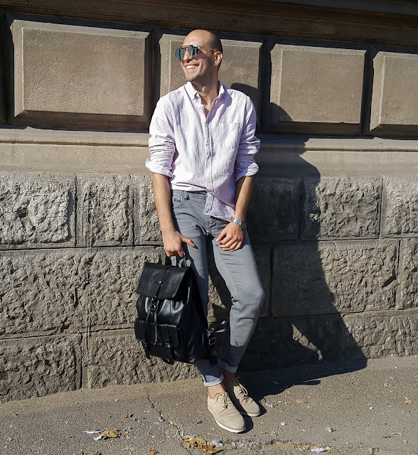 Hello friends, there are great places for online shopping for women and men, one of these sites is Rosegal . People want to have the perfect things and to look innovative and different at every opportunity. Casual combinations are excellent, they can be worn throughout the day and for many occasions. If you have obligations from early morning until late at night, out of colledge to work and a birthday party in the evening, you can be in the same clothes and to look good, a combination that I present in this post will help you make a busy day easier. The backpack is black and of great leather, this model will never get out of fashion, it can fit in with many combinations. I love to wear it and I am very pleased with it`s quality. The jeans are gray and a little sorter, 7/8, without elastin, are very comfortable and sturdy. Can be an excellent fit with sports sneakers and T-shirt are very practical. The shirt is pink white, very comfortable. It’s fantastic material. Shoes are made of suede, can be worn to an elegant combination. Put in small details, from the same material, they are so comfortable they can be worn in longer walks. I really hope you like this post, follow my blog, I also welcome your comments and hope you enjoy it all. 🙂