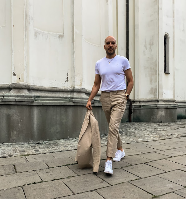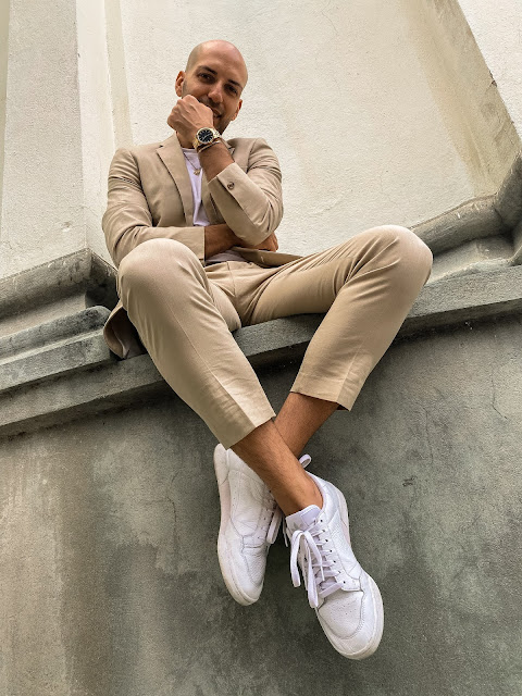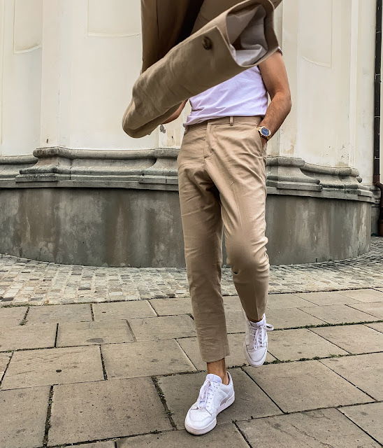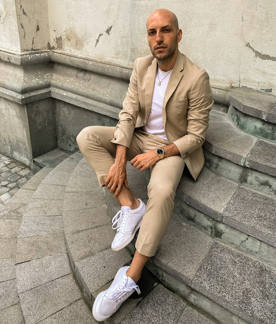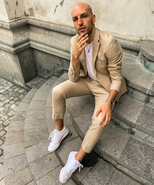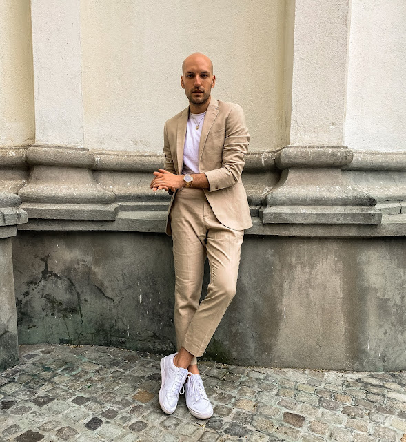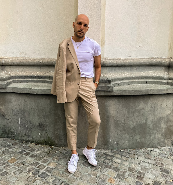Everything made of this material is very popular at the moment, you won’t go wrong with the color either but I suggest you focus on neutral and pale colors. Linen suit is very casual for every day, work, some celebration but also for a night out on warm days. In my opinion it is best to fit a linen suit, or just pants or a blazer with a plain and simple T-shirt, or just a linen shirt. Of course with good casual sneakers or shoes.