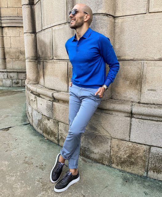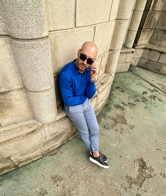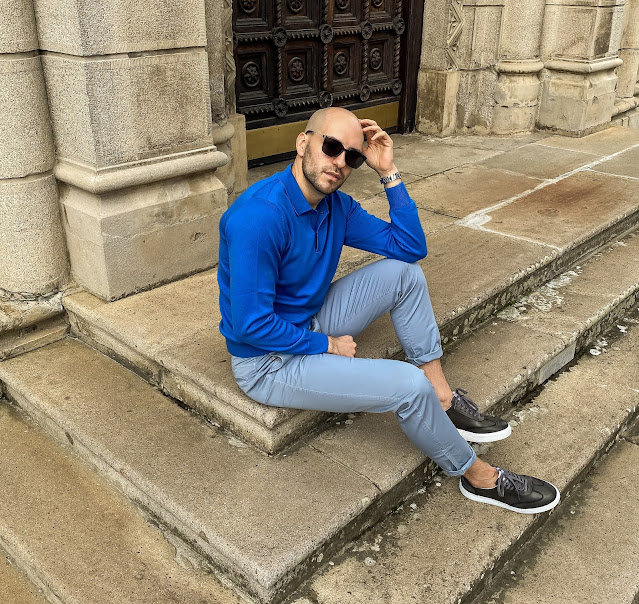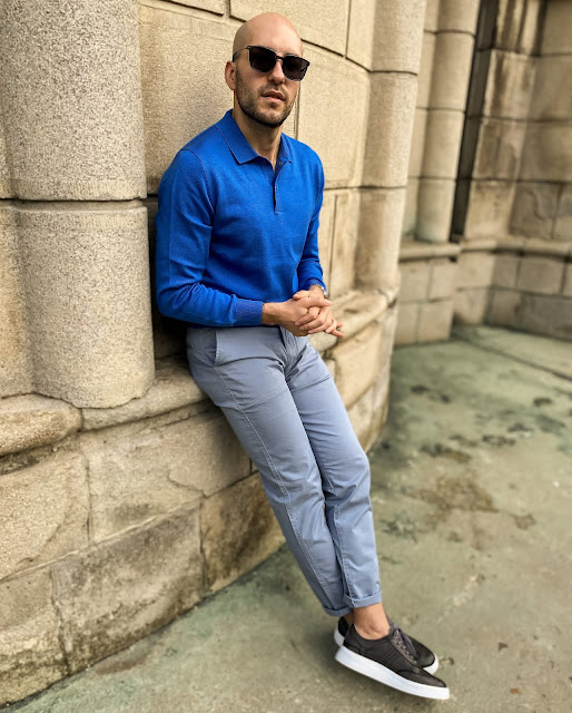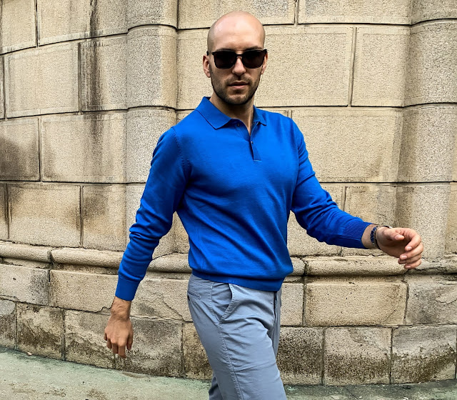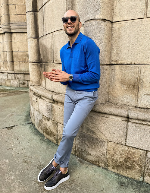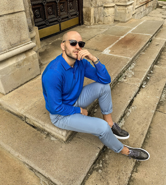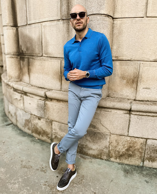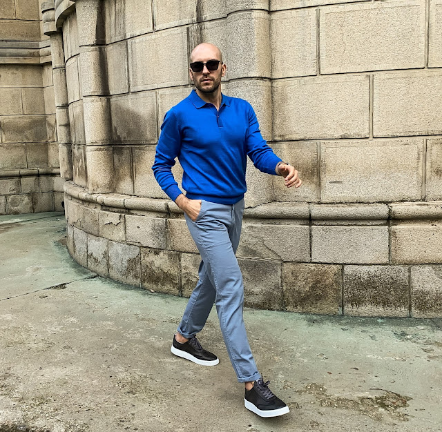 For this post I wear something very casual and classic. This sweather-blouse is perfect for autumn or spring, it´s a beautiful coral blue colors, it´s a very pleasant. I always pull my sleeves, it´s a habit and I feel more comfortable. Pants are very classy and I love them a lot, it´s a combination of two colors pale blue and gray and very comfortable, I´ve worn a lot of them this year, they are a little shorter. I really love this sneakers, it´s an amazing quality, perfect color, dark gray and white, go great with a lot of combinations, it´s classic sneakers, which you always need in your shoe closet. This is a perfect suggestion for your outfit if you want to look great and classy but not very elegant.